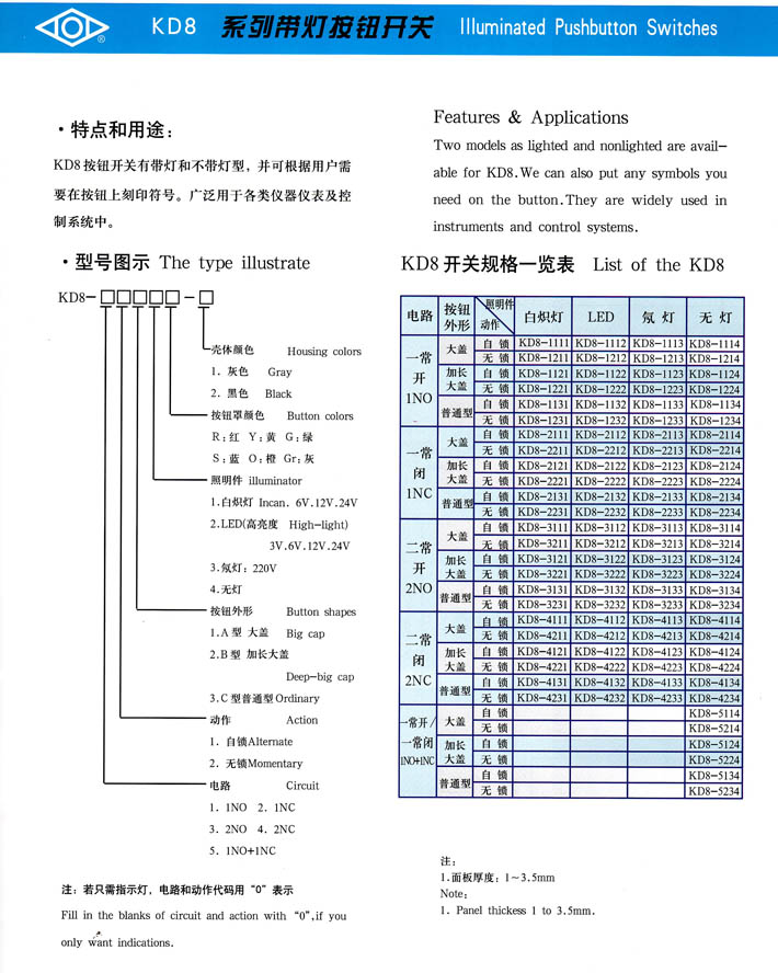 產(chǎn)品型號(hào):KD8系列帶燈按鈕開關(guān)