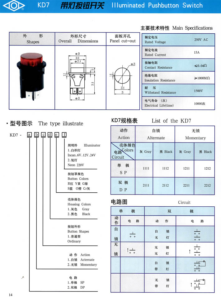 產(chǎn)品型號:KD7系列帶燈按鈕開關(guān)